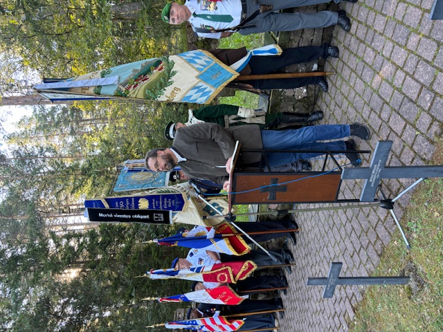 Im Anschluss daran sprach Militärdekan Thomas Funke ein geistliches Wort, das die Bedeutung des Friedens und der Erinnerung an die Opfer des Krieges unterstrich. Der Musikverein Norsingen begleitete die Zeremonie erneut mit einem weiteren Choral, bevor Général Dominique Mueller, Präsident des Memorial de Linge, die Gedenkrede hielt. In seiner Ansprache betonte er die Wichtigkeit der deutsch-französischen Freundschaft und die Lehren aus der Geschichte.