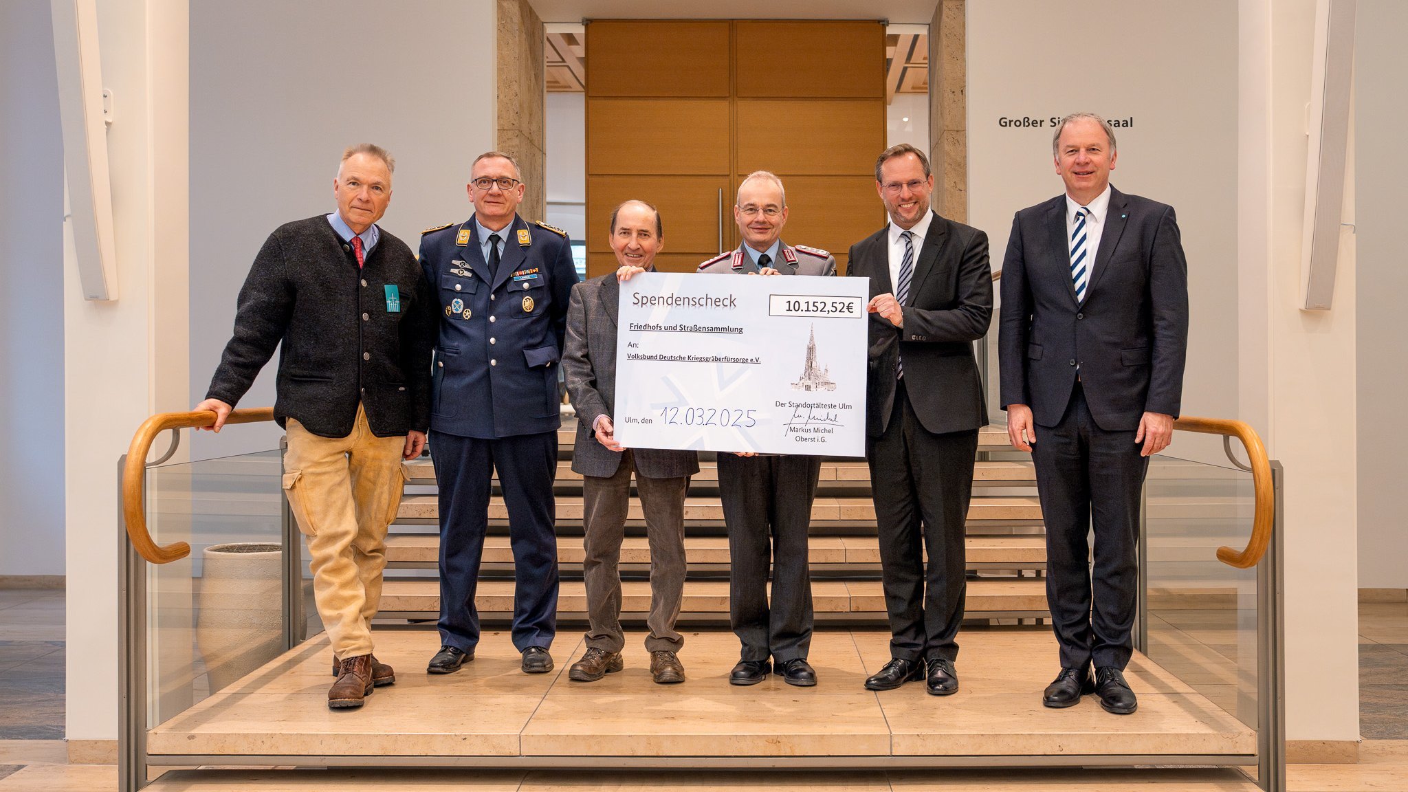 Gestern konnten wir im Ulmer Rathaus den Scheck für die Haus- und Straßensammlung 2024 der Bundeswehr Ulm entgegennehmen.